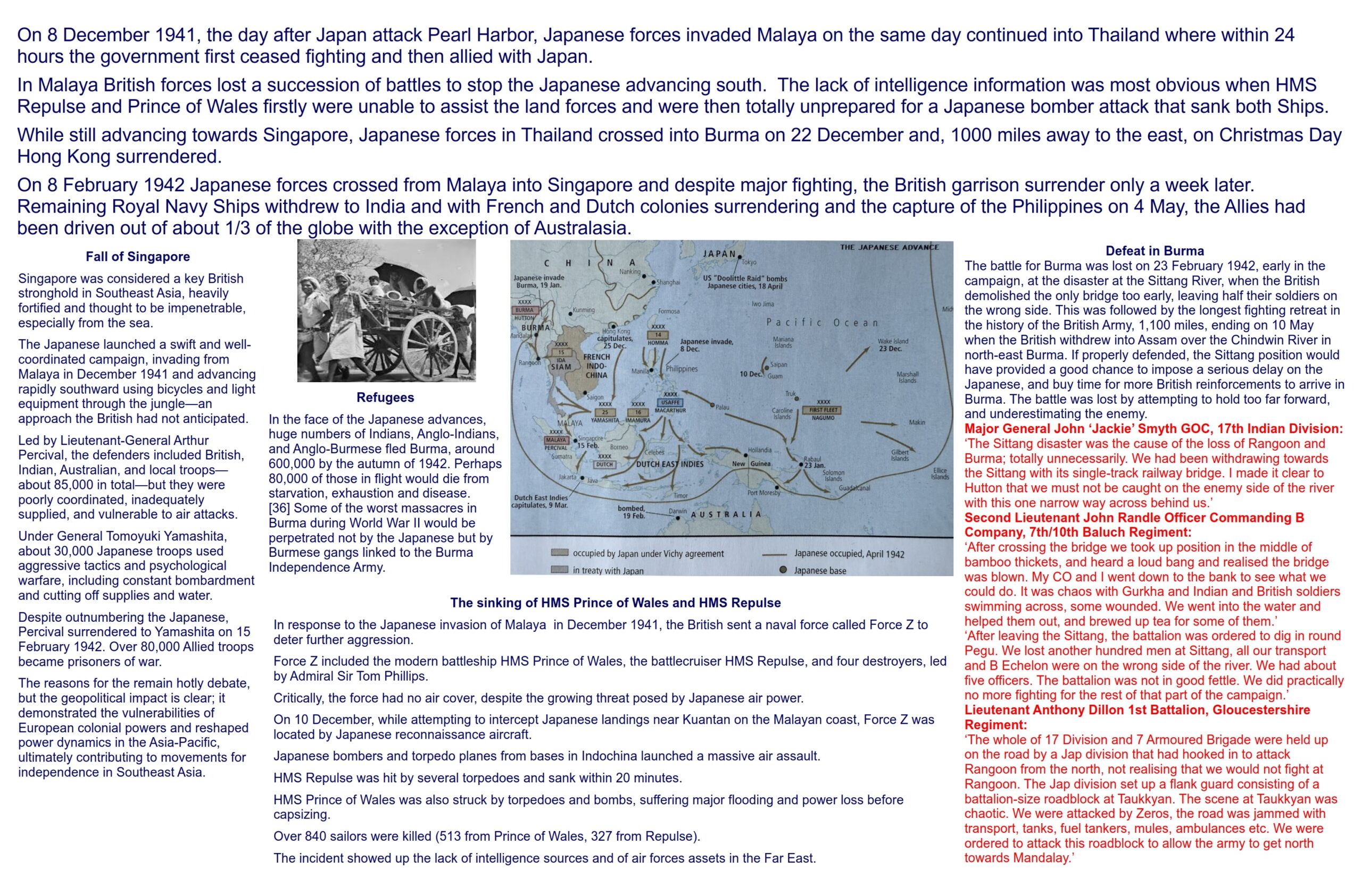 The human impact of the fall of Singapore is illustrated in 2 of the interviews shown in the accompanying YouTube playlist